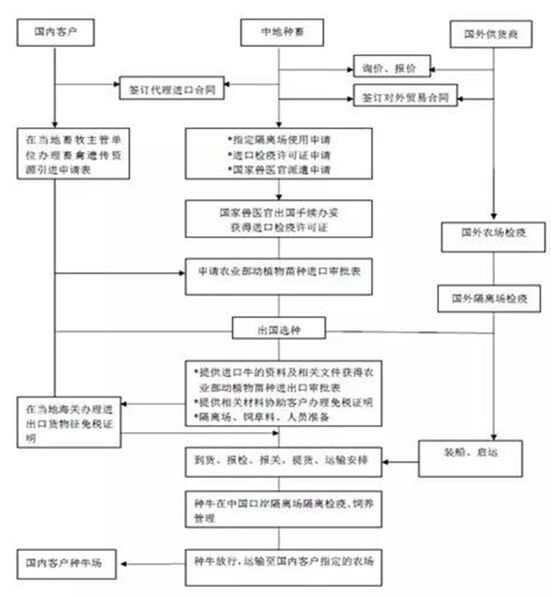 进口种牛是一项复杂的系统工程,操作周期长达6个月左右,具体流程如下: