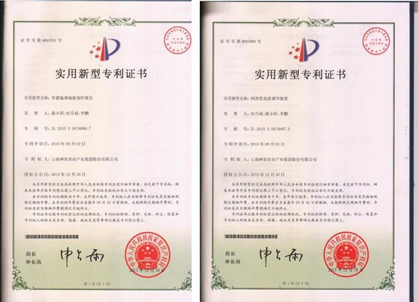 截止2016年1月份,神农集团共有专利数34项:发明专利3项、实用新型专利8项、软件著作权2项、外观设计专利21项。