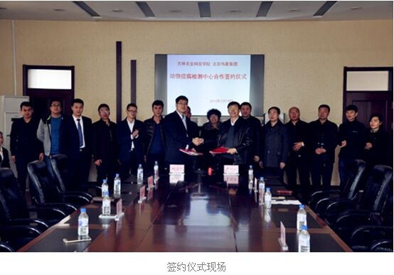 2016年3月19日,嘉云检测与吉林农业科技学院共建第三方动物健康检测与评价云中心签约仪式成功举办。签约仪式由吉林农业科技学院动物科技学院党组织副书记赵世文先生主持,吉林农业科技学院动物科技学院院长李国江先生、党组织书记柴春梅女士、副院长张秀峰先生、李长生先生、动物医院院长牛伟先生,伟嘉集团东北大区总裁玉基哲先生,嘉云检测战略推进组组长、沈阳伟嘉牧业技术有限公司总经理赵宝凯先生以及学校老师等相关领导和负责人共同出席了本次签约仪式。