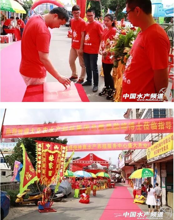 2016年5月9日,大北农大得快神爽水产养殖服务中心在中山市三角镇顺利开业,大北农水产科技集团总裁易敢峰博士和大得快神爽水产养殖服务中心总经理杨廉开完成了揭牌仪式,大北农水产科技集团总裁办主任周悦老师和大北农水产科技集团(以下简称大北农水产)首席科学家潘淦教授等嘉宾以及当地200多位养殖朋友参加了本次开业典礼。