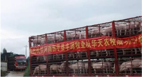 2016年5月10日,2辆满载华天新加系原种猪的重卡从华天农牧顺昌核心场出发北上,这批华天300余头原种大约克、长白、杜洛克猪将于11日到达河南丰源集团繁育。