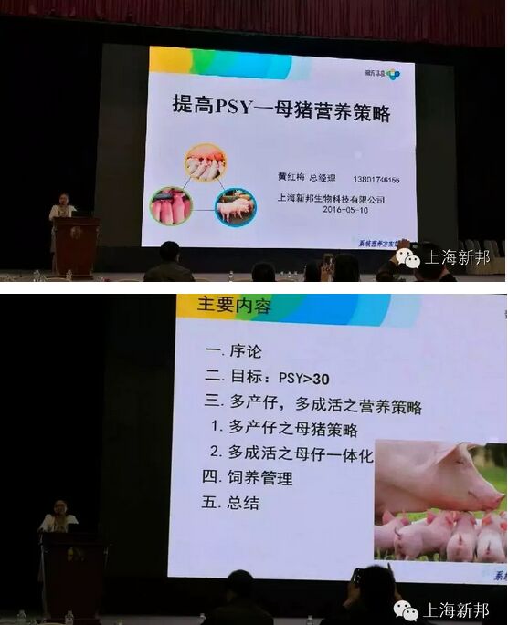 会上,上海新邦总经理黄红梅女士做了关于《提高PSY-母猪营养策略》的详细报告,通过对2015年生猪市场环保政策的发力及2016年行情乐观对养猪水平高要求的深刻分析,引出了高水平养猪的关键控制因素及提高母猪PSY的营养策略。