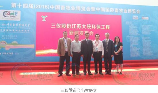 5月18日,三仪集团江苏大统环保工程新产品上市发布会在沈阳中国畜牧业博览会现场举行,成为三仪集团第四个五年规划战略“做强动保、做大营养、做实环境;动保品牌、营养数据、环境贡献”实施的又一个里程碑。全国畜牧总站党委书记、副站长、中国畜牧业协会副会长兼秘书长何新天,三仪集团副董事长江庆国,三仪集团常务副总裁苏昌志,江苏大统环境工程有限公司总裁满光明,沈海牧业总经理李凤艳出席了此次发布会。