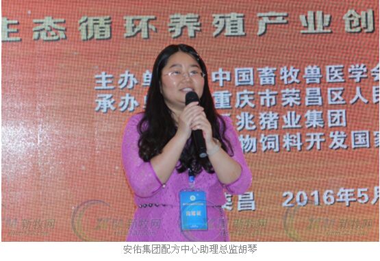 安佑集团配方中心助理总监胡琴博士作《低碳之高效环保饲料发展》的主题报告。