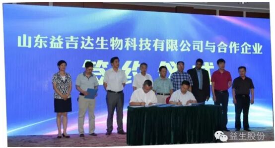 随后,在会议现场,山东益生生物科技有限公司与齐鲁、信德威特、蔚蓝生物、易邦等多家生物制品企业举行了签约仪式,曹积生董事长与张洪本会长会同省、地、县领导及Ephem博士一同出席了签约仪式。