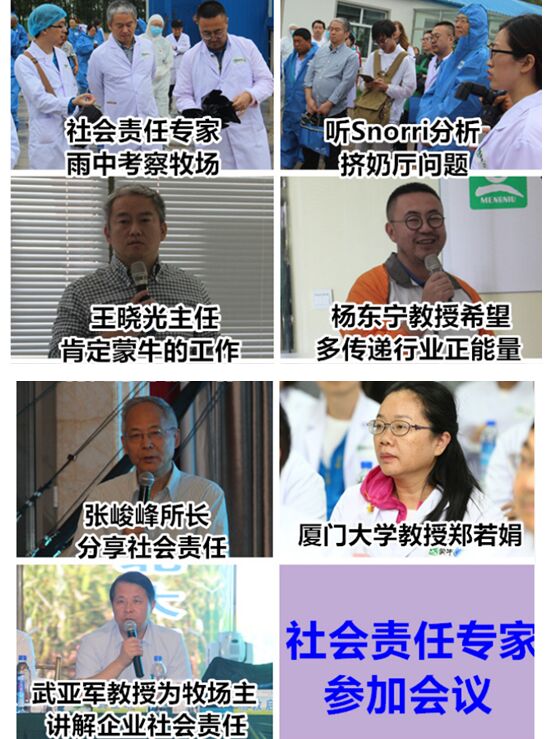 本次培训还邀请了社会责任专家参加,原人力资源与社会保障部国际劳工研究所副所长张峻峰、北京大学光华管理学院教授杨东宁、北京大学光华管理学院教授武亚军、中国工业经济联合会企业社会责任促进中心主任王晓光、厦门大学社会责任研究中心教授郑若娟等与体系专家一起,来到科菲特示范牧场,深入了解中国乳业,从社会责任角度对奶业发展提出了自己的建议。王晓光主任认为,蒙牛举办的培训活动体现了行业领军企业的社会责任,不仅自己做的好,还推动整个产业链都做好,希望奶业生态圈扩大到社会生态,让社会公众和消费者也相信“中国牛奶真的很好”,只要把行业的正能量充分有效的向社会传递,相信中国奶业的未来是光明的。杨东宁教授表示,到牧场亲眼见证牛把草变成牛奶的过程,大开眼界,希望有更多的机会发现其中的正能量,也希望社会公众参与进来,提升消费信心。