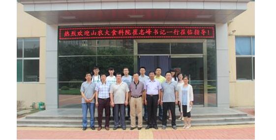 2016年7月19日,山东农业大学食品科学院党委书记崔志峰、副书记赵明月、团委书记孙慧敏、副书记董亮亮、朱传和教授、辅导员刘鹏、王琪等一行10余人到公司参观交流指导,公司董事长刘在青、总经理耿新强、副总经理肖建森、财务总监任治国热情接待并陪同参观了公司GMP生产车间、研发中心、检验中心。
