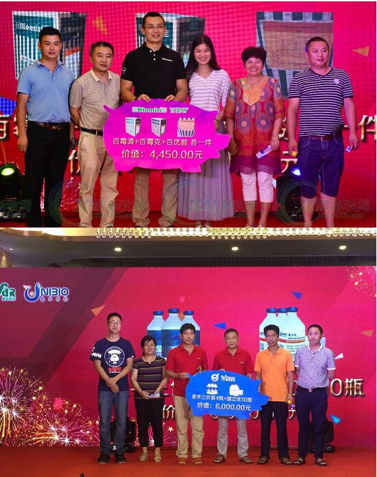 金宇集团市场总监黄劲平、百奥明中国区总经理安纲、华农恒青董事长李旭荣分别致辞并抽奖。每个奖项均设置5个,包括价值6000元4瓶金宇三价苗+圆立优10瓶;总价值4450元的百霉清1件+西霉克1件+百优酸;以及价值4000元的华农恒青哺乳母猪料奶佳旺1吨!
