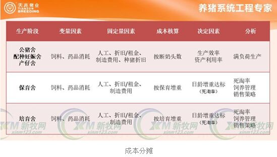 说到成本目标,他表示,首先是确定目标,如12元/公斤。然后是分析影响成本的因素,如固定投资、耗用、人工、制造费用的分摊,制定有效率的管理,计算明细各阶段的成本指标,加以管理控制。“养猪走向工业化,我们需要标准化的、稳定的生产,可以掌控风险的系统”,他说道,养猪要往工业化、信息化发展,设计上也要以这样的概念去设计。
