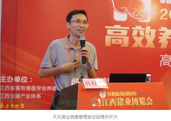 风起云涌,八方云集,南昌盛会,共话猪业。7月22日,来自江西各地的过万养殖业内人士群英荟萃,景从而至南昌国际展览中心,参加双胞胎集团特约2016江西猪业博览会。会场不仅有缤纷的活动,亦有精彩的讲课。猪价高,如何高效环保地养猪也是讨论的热点,天兆猪业销售管理部总经理孙权兴也特意分享了天兆猪业的养猪系统工程4.0,分为标准化、数据化、系统化和开放合作四个部分。