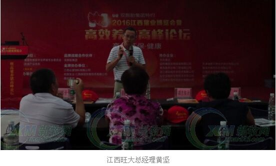 在2016江西猪业博览会暨高效养猪高峰论坛上,江西旺大总经理黄坚介绍了该公司的“乳仔一体化”方案,为养殖户提供了生猪营养的另一个视角。