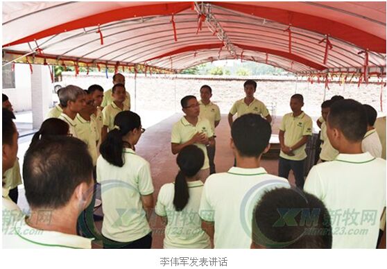 2016年7月26日上午十一点半,爆竹齐鸣,掌声不断,佛山瑞宝开平建大农场(以下简称建大农场)正式揭牌。佛山市瑞宝动物保健有限公司(以下简称佛山瑞宝)总经理李伟军和他的团队成员共同见证了其首个养殖场的揭牌,当日下午,专家、企业代表和周边养户等约有300人慕名前来参观并道贺。