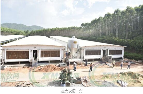 佛山市维嘉动物药业有限公司总经理刘伟光告诉记者,建大农场是温氏股份的合作育肥场,一期共有6栋猪舍,共投资一千万元,设计年出栏二万五千头,全场采用自动化设施,实现了高标准化养殖,并实现粪尿分离,将固体粪物堆积后对外销售,尿液进入厌氧池发酵后抽到周边山上浇树,实现零排放。