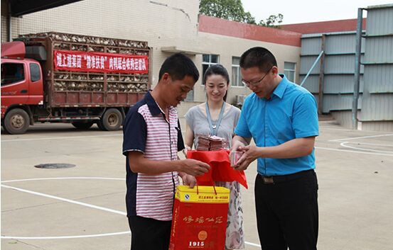 13日晚,为避开白天的高温,省扶贫办处长、驻湖陂村第一书记胡并发及煌上煌精准扶贫行动小组通宵达旦,帮助养殖户将近两万只鸭装上收购运输车辆,随车奔往煌上煌收购点。收购现场,煌上煌集团食品股份公司执行副总经理、煌上煌精准扶贫行动领导小组执行副组长范旭明将沉甸甸的货款现金交付到养殖贫困户代表的手中。原本在外地打工、身患疾病的养殖贫困户接过现金后笑容满面,激动地表示有信心一起把家乡的养殖事业干好。