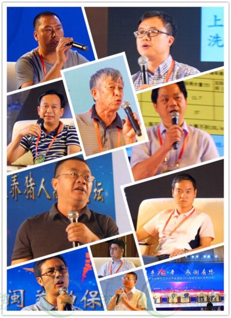 福建农林大学动物科学学院教授俞道进、福建鑫锦宏农牧开发有限公司总经理林锦、福建屿兴农牧发展有限公司董事长庄金木、福建佑康农业股份有限公司总经理洪清伟、福建闽宏种猪发展有限公司总经理程涛、福清丰泽农牧科技开发有限公司资深猪场建设专家林俊华、卡美农业技术咨询(苏州)有限公司总经理杨磊、福建兴顺饲料有限公司总经理赵同、四川农业大学动物营养研究所教授方正锋、广东南牧机械设备有限公司技术总监李玉锁围绕猪场用水、建造、饲料、环境等问题展开了一场头脑风暴。