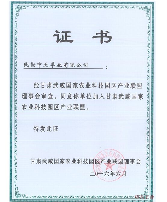民勤公司加入甘肃武威国家农业科技园区产业联盟