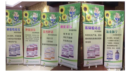 会议现场布置新颖,气氛热烈,反响很好,全新易拉宝闪亮呈现,会议现场订货共收现金10万多元,预计后期拜访总销量达15-20万!充分展示了武汉金华农兽药优异的产品质量和显著的临床疗效,深受广大养殖户的欢迎、认可与喜爱!