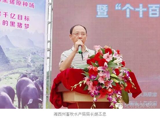 胡丕忠局长发表重要讲话,对北京资源亿家聚全力推动湘西黑猪产业化扶贫工程的毅力和付出表示赞扬,也对今天智能化原种场的投产表示热烈的祝贺。胡局长强调,资源生态智能化湘西黑猪原种场项目于2013年12月开工,经过3年的建设,现已竣工投产,其影响力广,社会关注度高。该项目竣工投产标志着永顺县生猪产业发展迈上一个新台阶,对全州养殖业结构调整,促进湘西黑猪产业发展,实施精准扶贫工程,带动农民增产增收具有重要意义。