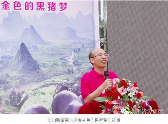 刘钧贻董事长做了《金色的黑猪梦:冲击黑猪千亿目标的构想》的重要讲话。刘钧贻董事长在讲话中指出,金色的黑猪梦是资源亿家集团今年6月18日在北京京西宾馆面向社会、针对湘西黑猪产业冲击千亿目标所做出的战略规划。随着今天湘西黑猪原种场的投产暨“个十百千万+”工程的正式启动,湘西黑猪冲击千亿目标的序幕也正式拉开。