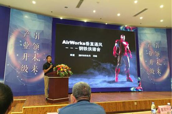 江西奥斯盾的合作方华特希尔技术总监郑重做了“AirWorks垂直通风——钢铁侠猪舍”的报告,并进行了现场互动。