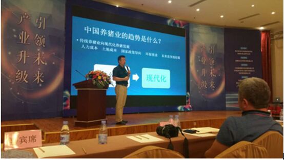 在下午举行的首届中国西南(旺江)现代化养猪高峰论坛上,江西奥斯盾董事长熊俊宏做了“中国现代化养猪发展趋势”的报告,并进行了现场互动。