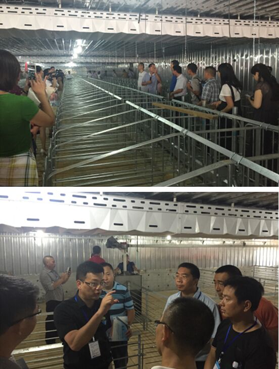 庆典活动结束后,300人左右参观人员分三组参观了新建成的现代化农场一期工程1200头母猪猪舍,包括配怀舍、产房、隔离舍、销售舍和办公生活区。猪舍整体由江西奥斯盾公司设计,同时江西奥斯盾公司还提供了通风系统、喂料系统、水电系统、产床和料槽的全套设备和安装。