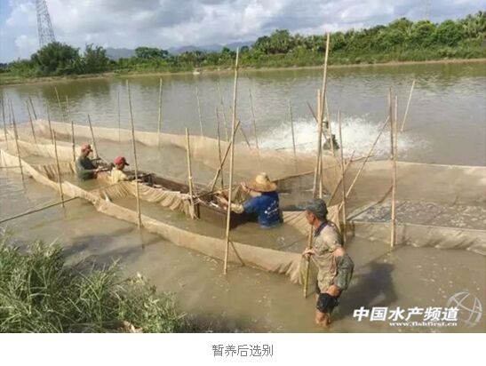 四、拉网和清塘抓鱼 高温季节鳗鱼活动能力强,捕捞困难,需选择黎明或阴雨天拉网和清塘,另外需要找有经验的拉网工人,要求拉网操作熟练、快捷、上网率高,以提高效率,减轻对鳗鱼的刺激。