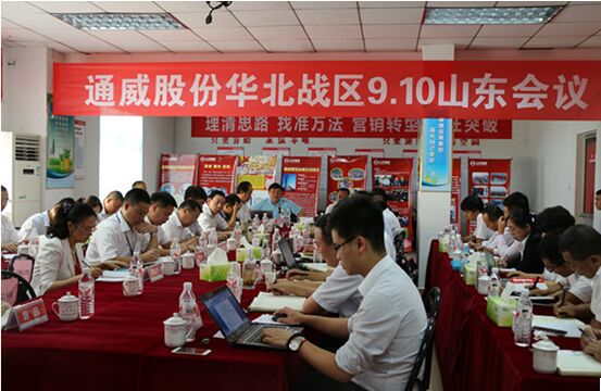 近日,通威股份华北战区9·10山东会议在山东通威隆重召开,通威股份郭异忠总裁、通威股份总裁助理兼华北战区总裁周澎、通威股份畜禽研究所所长程远芳、畜禽研究所首席营养专家罗润生、驻华北战区各营养师及战区各职能线总监、各分子公司总经理、市场部经理、畜禽服务部经理、财务及品管经理等60余人参加。
