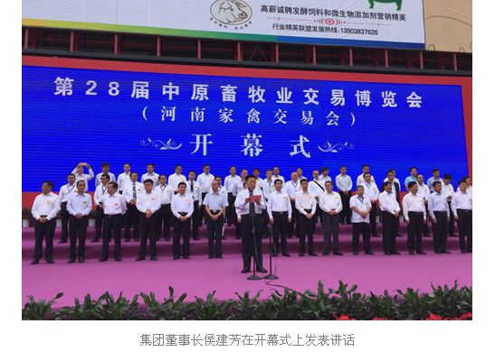 当天上午,雏鹰农牧集团董事长侯建芳受邀在开幕式上发表讲话。他表示,河南畜牧业交易会经过近30年的成功举办,已成为畜牧企业交易、展示、交流、合作的重要平台,已成为中原地区乃至全国畜牧行业的重要交易会。雏鹰农牧集团连续多年参加畜牧业交易会,我们从交易会中沟通了国内外市场信息,增进了交流与合作,提高了企业的国际竞争力、展示了企业形象和产品,提升了品牌的知名度。