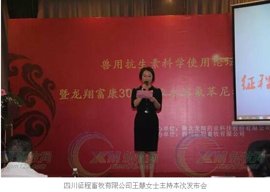 2016年9月18日,值第六届中国兽药大会召开之际,国内原料药龙头湖北龙翔药业科技股份有限公司在成都双流举办“兽用抗生素科学使用论坛暨龙翔富康30%高浓水溶氟苯尼考上市发布”。
