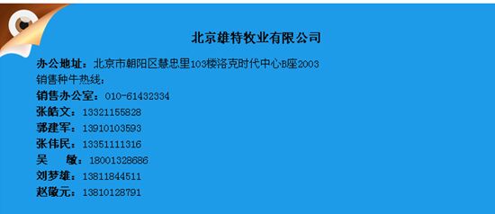 北京雄特牧业有限公司秉承优质、诚信、高效、开拓的企业理念,紧跟世界育种脚步,始终走在行业发展前沿,以提高我国畜牧业生产力为己任,倾力打造中国活畜进口优质品牌。