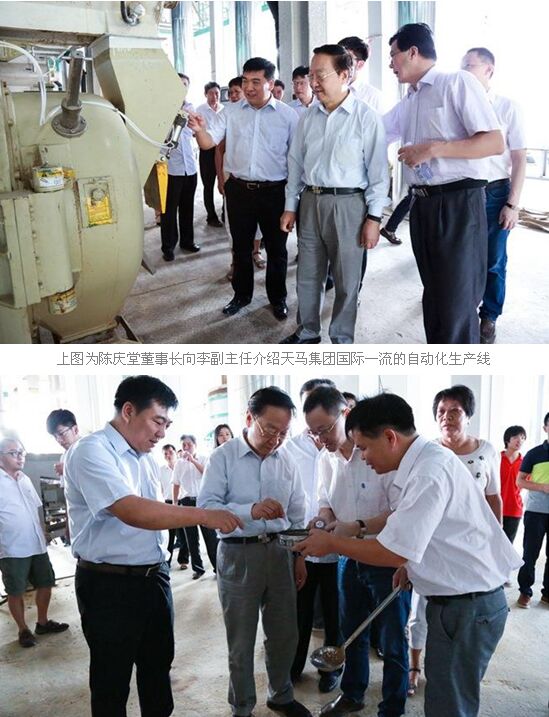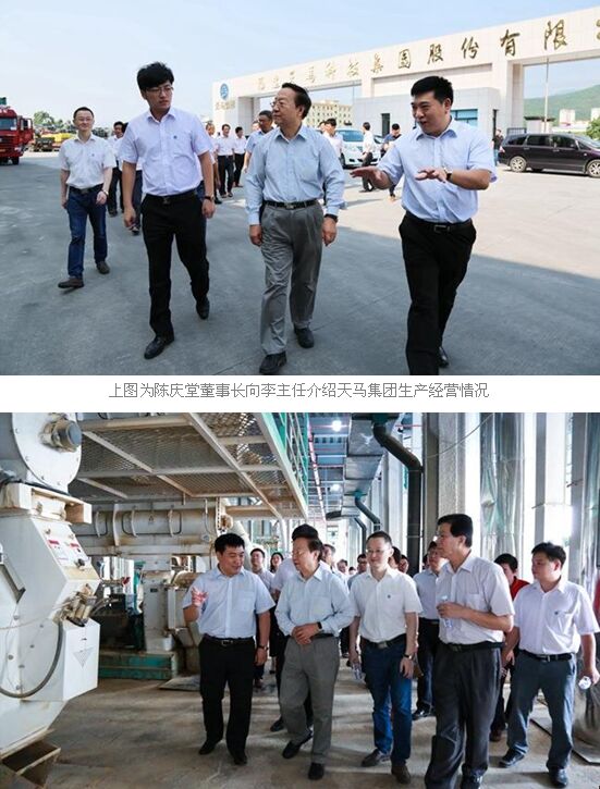 李副主任兴致勃勃地参观了天马集团二期引进的瑞士布勒制造的自动化生产线,认真听取了陈庆堂董事长的汇报,细致了解了天马集团的生产经营情况,对天马集团为引领特种水产饲料发展作出的努力予以充分肯定。他希望天马集团一如既往地“为了人类健康,追求卓越品质”,坚持创新驱动,不断提高科技创新、管理创新,商业模式创新,增强核心竞争力,不断做大做强。