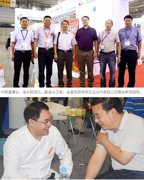 阳光关怀:农业部及省领导莅临展台指导 兽药大会:农业部副部长于康震、河南省畜牧局相关领导等到公司展台进行参观指导。