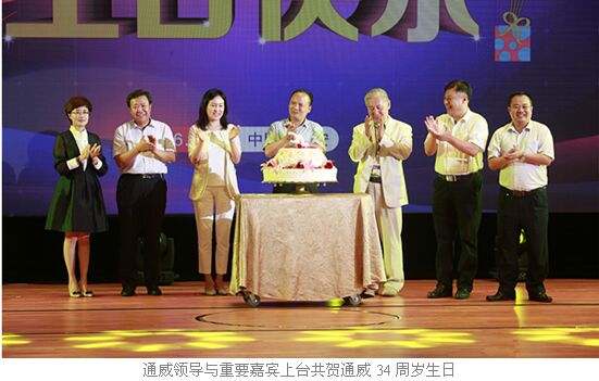9月20日晚9时20分,第二届通心粉之夜暨华东超级通心粉颁奖晚会迎来最盛大的时刻——通威集团34周岁生日。全国水产技术推广总站站长肖放,中国光伏农业工作委员会会长张勇,中国光伏农业设计研究院首席农业专家、荣誉院长冯玉林,十一届全国政协常委、通威集团董事局刘汉元主席,通威集团禚玉娇总裁,通威股份郭异忠总裁等一起上台共切蛋糕,同贺通威集团34周年华诞。