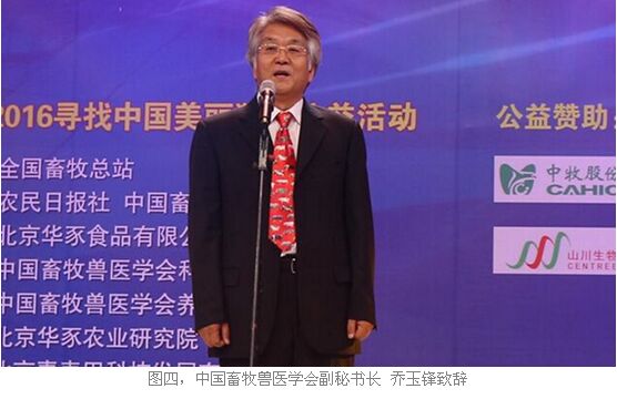 中国畜牧兽医学会副秘书长乔玉锋在颁奖典礼说到,今年我们养猪人遇到了30年一遇的好行情,今年养一头猪赚的是最多的。我们这个活动已经做了两届,还会继续做下去,借助农民日报和CCTV-7农业频道的平台,做好宣传,使我们养猪业为国家建设美丽的猪场、提供健康安全的猪肉,让人民可以吃到放心猪肉。