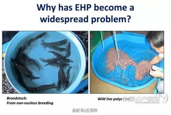 但为什么EHP会成为全球性的大问题?罗宾斯说到亲虾时故意表示了“静默”,其中有许多“隐形”的因素,因此,选育SPF亲虾是必不可少的。EHP成为流行性的病害,有两方面的原因,一个是亲虾不是来自无病毒核心繁育中心,极易携带病原,另一个则是活饵料的使用,它们是病原的潜在携带者。