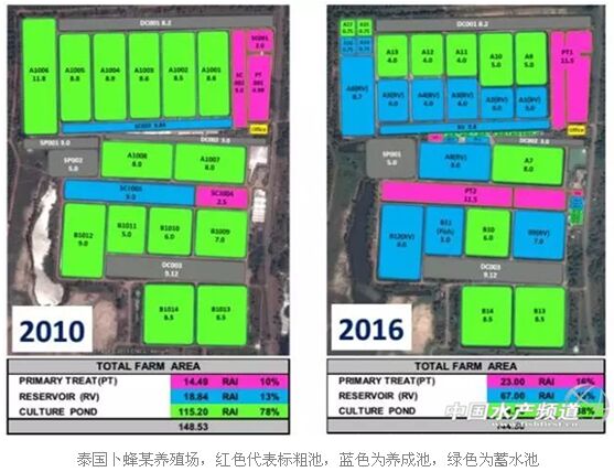 从上图可以看出,与2010年相比,2016年养成池的面积减少,而蓄水池和标粗池的面积相应增加。罗宾斯在报告中指出,尽管对虾的实际养殖面积减少,但与发生EMS之前相比,整体的利润和成功率是提高的。
