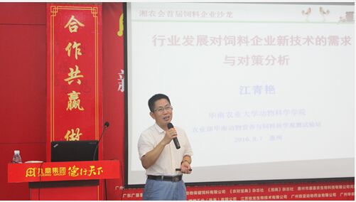 华南农业大学动物科学学院院长江青艳、广东海大集团华南二区总经理罗蕗先后作了题为《行业发展对饲料企业新技术的需求与对策分析》与《海大的服务营销》的主题报告。江青艳院长从当前畜禽养殖业面临的主要问题、行业发展对饲料新技术及新产品的需求,当前饲料界学术与行业热议的部分新产品等几个方面进行了分析。江院长认为科技创新是产业发展的核心动力,饲料添加剂产业的创新和发展,必将有赖于更加深入、系统的科学研究。按照“安全、高效、科学、节能、环保”的原则,对现有添加剂产品及其使用进行优化,同时不断开发新产品,是推动饲料添加剂产业健康、快速发展的最重要途径。