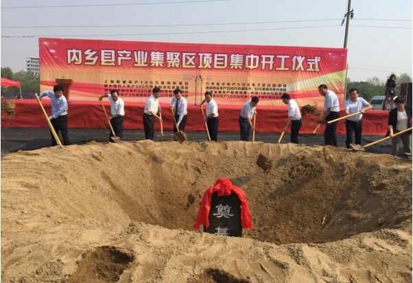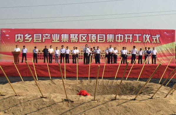 9月23日,内乡工业发展再添新力,内乡县产业集聚区项目集中开工仪式隆重举行,涉及农牧装备制造孵化园和机械电子园两个园区共8个项目将在此孵化。南阳市市委常委、常务副市长原永胜,市发展改革委主任乔长恩,市统计局局长时德清,市工信委主任肖海有,市招商局局长刘永国,市大项目办主任王文巍,内乡县县委书记李长江,县长杨曙光,牧原董事长秦英林等出席仪式。