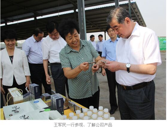 总裁于忠波向王军民汇报了学生奶推广及免疫产品的研发情况,王军民强调说,学生奶推广是全省的一个大事,目前,抓得比较扎实的就是银香伟业,他鼓励企业要扎扎实实的抓好学生奶推广工作,希望公司的学生奶发展经验能在全省推广,使归一学生奶走出菏泽、走向全省。当谈到免疫产品研发情况时,他对公司从源头上控制产品质量的做法给予高度评价,并提出让公司与高校合作,使公司的免疫产品研发更具有科技性,这样才能实现免疫饲料到免疫产品的有效转化,为我们的后代生产出更加健康的牛奶,王军民说:“好奶先给我们的后代喝,让他们有免疫力,这样才能实现我们的中国梦。”