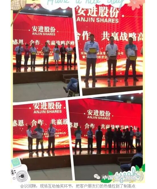 月圆之夜感恩让利盛典、饕餮盛宴迎八方来客 安进水产一年一度的《诚信、感恩、合作》大型感恩让利盛典让现场每一位客户都热情高涨,激情澎湃,每个人的脸上都洋溢着灿烂的笑容,会议现场的新老客户满载而归!