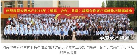 安进水产作为目前河南省唯一一家一次性同时拥有国家农业部11种剂型,共计16条标准GMP生产线以及水质改良剂,水底净化剂,饲料,饲料添加剂五大系列生产线与一体的大型现代化综合性水产药品生产厂家,又是河南省水产药品行业最具代表性的水产企业品牌!此次大会受到河南省内水产养殖行业同仁的广泛关注!