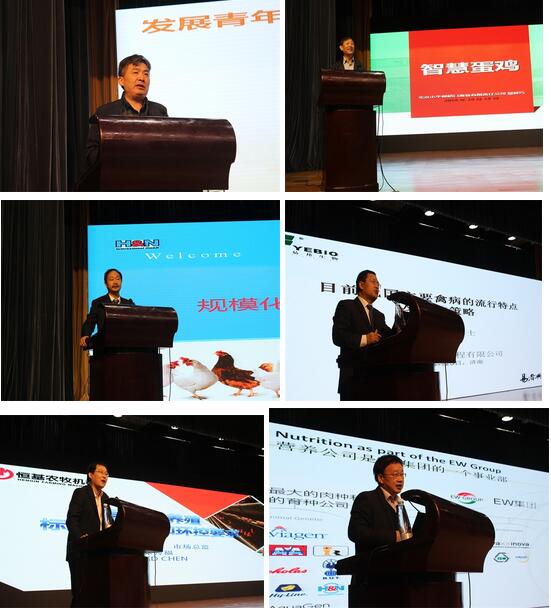 本次蛋鸡产业领袖峰会共邀请六位专家分别从育种、产业发展、养殖、疾病防疫及鸡舍建设等方面进行专题讲座。中国农业大学教授、国家蛋鸡产业技术体系岗位科学家宁中华做了《蛋鸡青年鸡发展与标准化》专题报告 。宁教授讲到我国专业青年鸡场、蛋鸡场、综合鸡场的现状及发展支撑条件及标准化问题等。随后北京华都峪口禽业有限公司周宝贵总经理做了《智慧蛋鸡》主题报告。周总旨在构建蛋鸡淘宝式智慧平台。山东爱佳集团孙习之董事长分享《蛋鸡规模化养殖的困惑》讲座,孙董就多年来从事蛋鸡养殖所遇到的问题及存在疑惑与大家共享,希望通过交流学习能推动蛋鸡养殖规模化进程。青岛易邦生物有限公司总经理杜元钊总经理分享《目前我国禽病的流行特点及防控策略》报告。杜总从禽流感到新城疫再到防控策略进行深入剖析,为蛋鸡养殖者提供有利保障。山东恒基农牧机械有限公司销售总监陈秀福做《标准化鸡舍设计与环境要素》报告。最后来自德国EW集团来太区总经理吴裕本博士分享《当前欧盟养殖现状与解决方案交流》专题讲座。