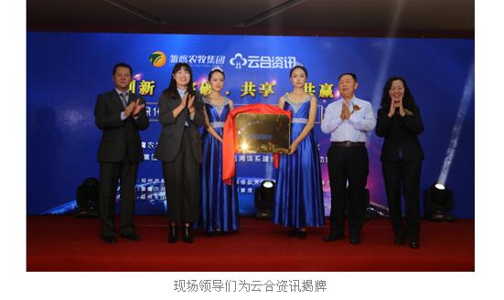 集团董事长侯建芳,副总裁杨桂红,云合资讯总经理肖春、副总经理吴磊共同为云合资讯揭牌,雏鹰农牧集团子公司河南云合资讯商业管理有限公司正式成立。