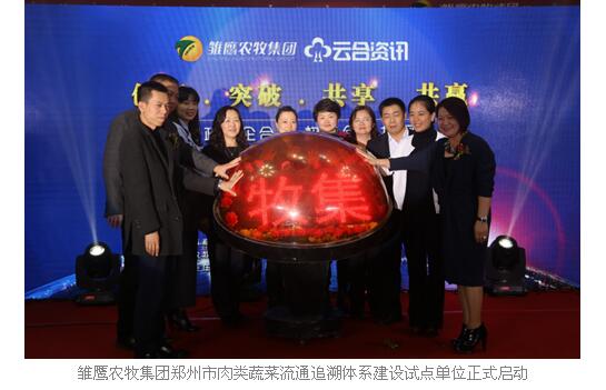 在现场领导和来宾的共同见证下,雏鹰农牧集团郑州市肉类蔬菜流通追溯体系建设试点单位正式启动。