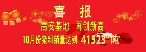 热烈祝贺华农恒青高安基地10月份猪料销量达到41523吨