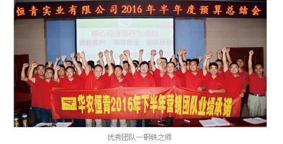 李旭荣董事长常常要求全体华农恒青员工和相关供应商坚持、坚定、坚决的做到:一个定位——养猪专业化服务型公司;三“心”——以“良心、真心、专心”做高稳定、高性价比好猪料;四个差异化——产品稳定性差异化,饲料营养均衡的差异化,饲料性价比的差异化,技术服务的差异化;六个专业化——营养配方专业化,围绕猪饲料原料采购专业化、标准化,围绕猪饲料原料和成品检测能力专业化,围绕猪饲料的生产工艺、生产流程、生产标准的专业化,猪饲料的营销团队要专业化、可复制化,围绕养猪专业化服务型公司的定位,我们的三级技术服务要专业化。