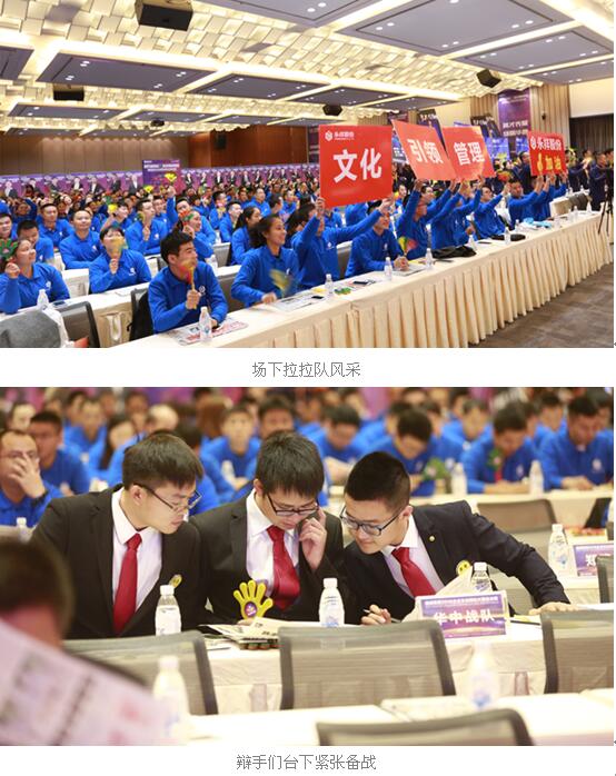 在央视名嘴刘栋栋的主持下, 总决赛于下午13时30分正式拉开序幕,从各轮初、复赛中脱颖而出的十强战队集结于此,围绕“企业员工的忠诚与能力,谁更重要?”、“企业成功是必然还是偶然?”、“企业管理人性化和刚性化谁更重要”等辩题,分五组展开了最后角逐,向总冠军发起冲刺。经过四个多小时的攻防对峙,十强战队为现场观众献上了一部精彩纷呈的论辩“大片”。台上,选手们逻辑清晰,思维敏捷,一展风采;台下,各拉拉队卯足劲为台上辩手呐喊助威。大赛专家评委组根据各辩手的现场表现,综合考量其辩论水平、表达能力和临场状态以及团队配合情况,评选出优胜团队和个人奖项。其中,总部第二战队拔得头筹,斩获“通威集团2016企业文化辩论大赛冠军”殊荣。