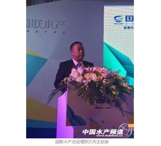 国联水产总经理陈汉先生致辞说:“十五年来,国联水产坚持‘为人类提供健康海洋食品’为企业愿景,推进‘资源+市场+技术+互联网’战略,加大技术和创新上的投入,历时三年成功独创研发‘微冻技术’,并与可追溯质量控制体系结合,让鱼跳起来,让虾更活泼,让生活更美好。”