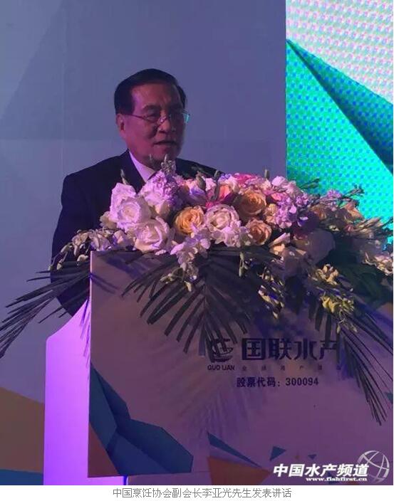 中国烹饪协会副会长李亚光先生发表演说表示,2015年中国餐饮业销售收入总值达到3.2万亿元,总量之大、增速之快、潜力之局,吸引着优秀企业加大国内市场的开发。“食品安全问题是绕不开的坎。”但令李亚光先生感到欣慰的是,国联水产加大新技术的研发和应用,建立了创新优质安全的生产体系,产品可溯源性也适应了消费者对食品安全的期望,为食品企业树立了榜样,其中的“微冻技术”更填补了国内不同地域消费者的需求。“国联水产积极参与国家‘一带一路’战略,成功把握住了历史机遇,将世界优质水产品纳入自身体系,实现了‘走出去’和‘引进来’的双向收获。”李亚光先生表示赞赏。